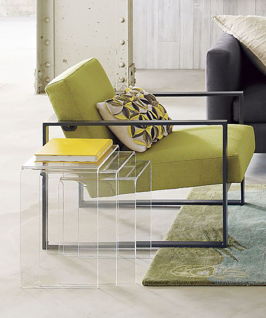 บางคนวางโต๊ะเล็กข้างโซฟาไว้แทบจะทุกมุมของโซฟา แต่ชุดนี้ก็สามารถวางได้ทุกมุมเช่นกัน และหากบางตัวไม่ใช้ ก็วางซ่อน ซ้อนกันได้ โต๊ะชุดนี้มาพร้อมกับความใส และดูทันสมัยช่วยสร้างบรรยากาศที่ Modern ให้กับห้องรับแขกได้ดี