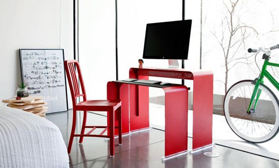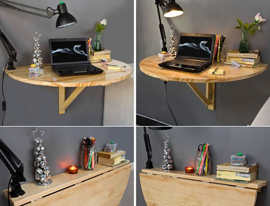 บางคนชอบทำงานในบ้าน แต่ก็ไม่อยากตั้งโต๊ะทำงานให้กินที่ หรือดูจริงจังเกินไป โต๊ะพระจันทร์เสี้ยวแบบนี้ก็เป็นไอเดียที่ดีเวลาที่อยากทำงาน และพอไม่อยากทำงานก็พับเก็บเป็นที่วางของข้างกำแพงได้สบายๆ