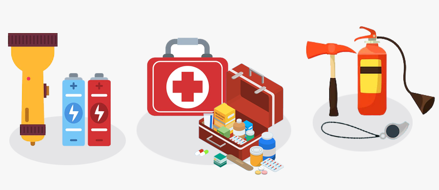 1. ควรมีไฟฉายพร้อมถ่านไฟฉาย และกระเป๋ายาเตรียมไว้ในบ้าน และให้ทุกคนทราบว่าอยู่ที่ไหน