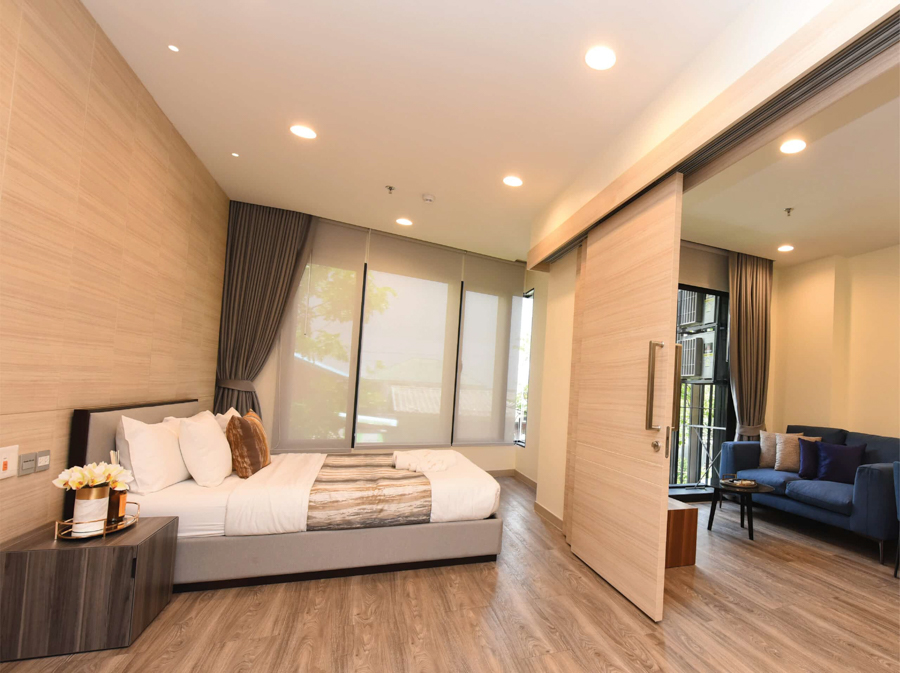 35,000 บาท/เดือน (1 ห้องนอน 43-46 ตร.ม.) + บริการเสริม