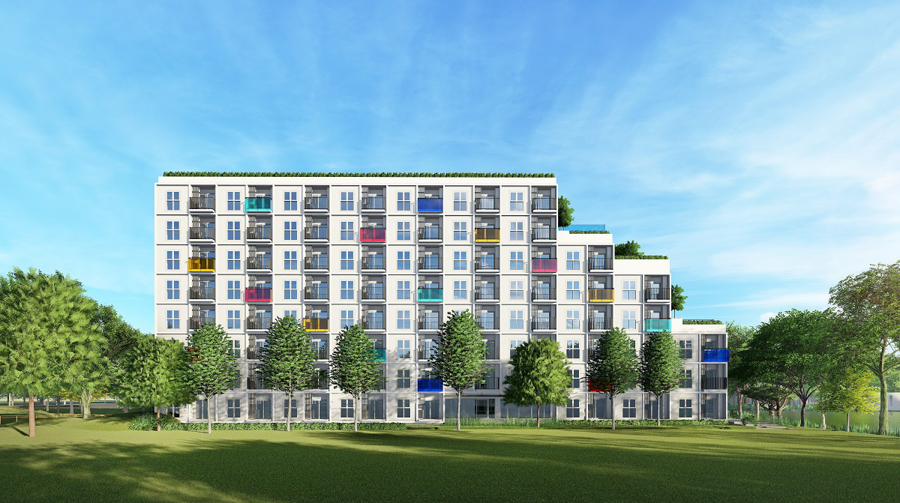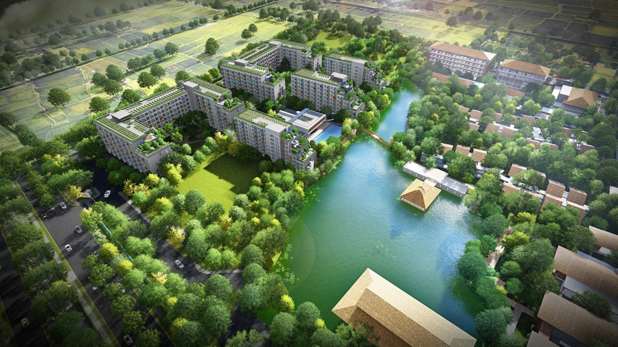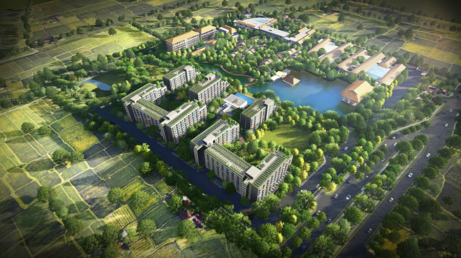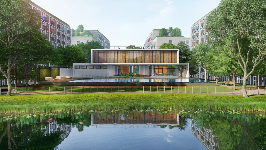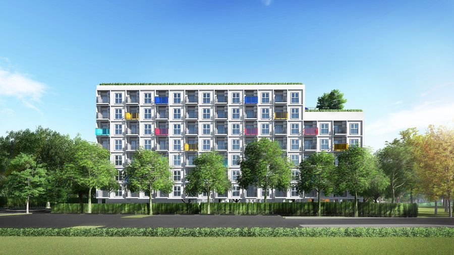 รูปแบบ : 8 อาคาร สูง 8 ชั้น 921 ยูนิต