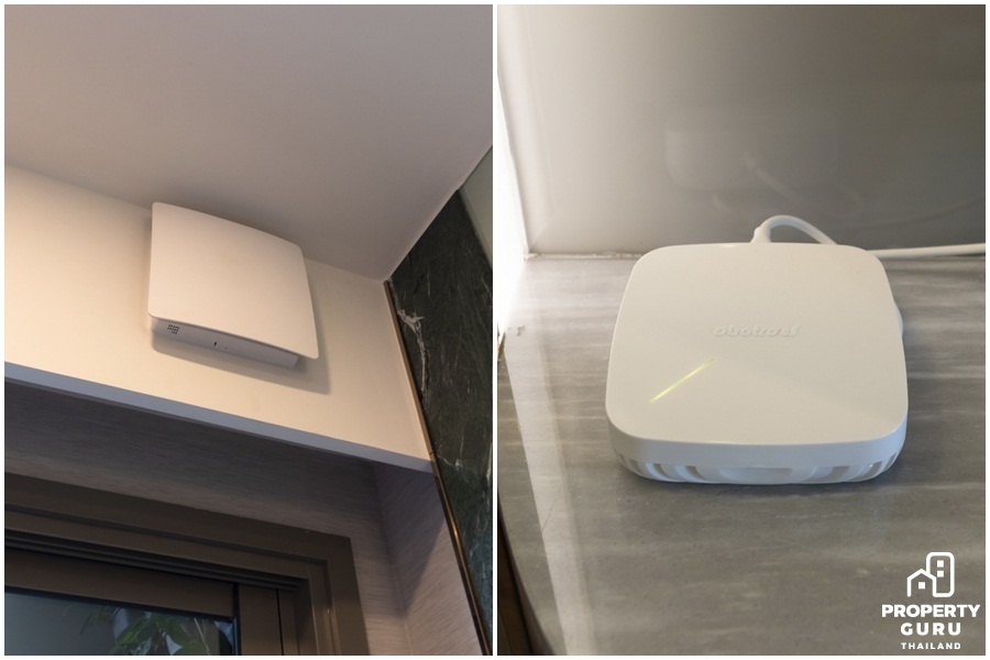 ภายในห้องนั่งเล่นมีเครื่อง ERV เป็นเครื่องแลกเปลี่ยนเพื่อนำอากาศบริสุทธิ์หมุนเวียนเข้ามาสู่ภายในห้องพักอาศัย ซึ่งจะทำงานคู่กับเครื่อง IAQ