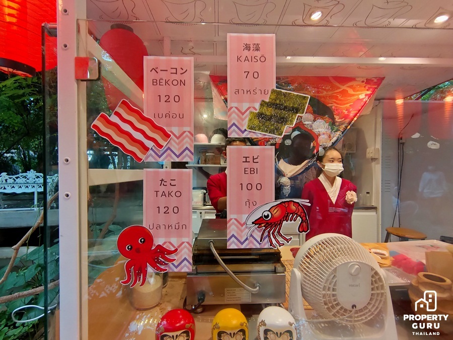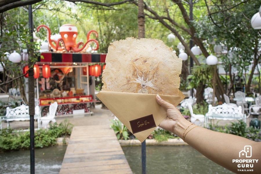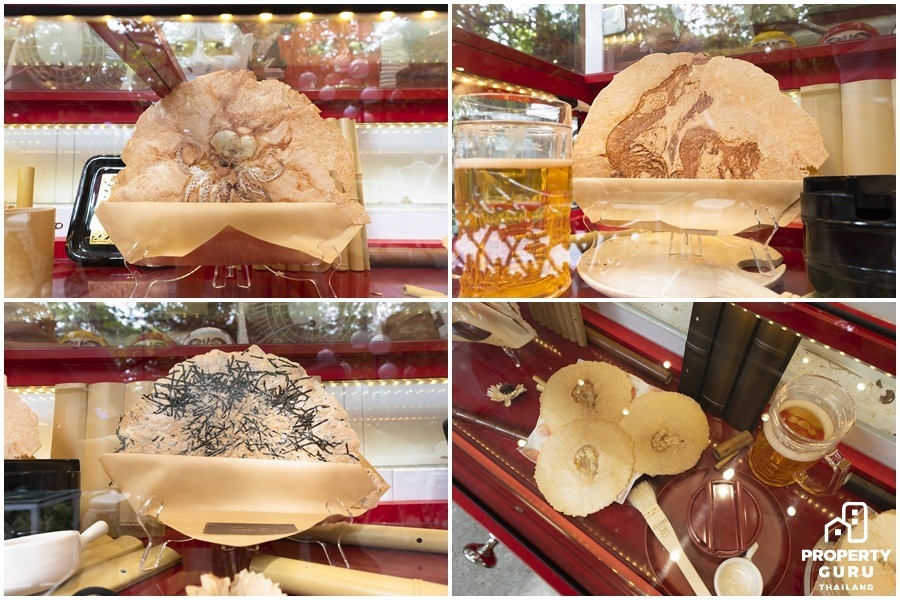 มีสี่รสชาติให้เลือกทาน หมาหมึก เบคอน กุ้ง และสาหร่าย ราคาก็จะแตกต่างกันไป เริ่มต้นที่ 70 บาท