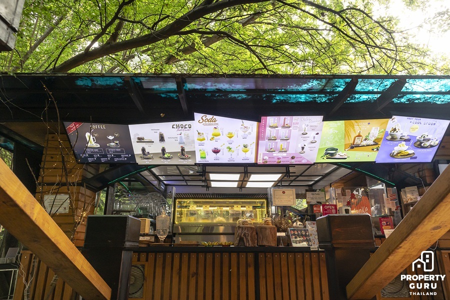 มุมนั่งทานอาหาร หรือจะนั่งจิบเครื่องดื่มในบรรยากาศแบบ Outdoor ที่แวดล้อมไปด้วยต้นไม้น้อยใหญ่ก็มี บอกเลยว่าถึงจะเป็นโซน Outdoor แต่อากาศไม่ร้อนเลย