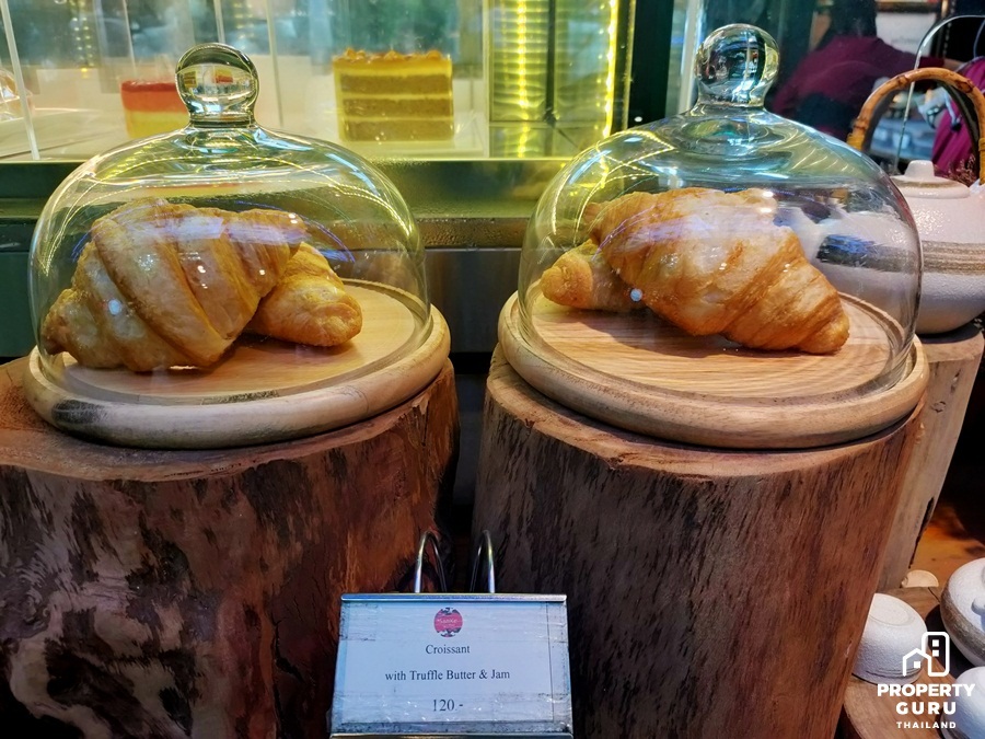 ครัวซองต์สูตรพิเศษที่เสริฟคู่เนยทรัฟเฟิล และแยม Home made 2 รสชาติ ที่ทำจากผลไม้แท้ๆ ก็เป็นอีกหนึ่งเมนูที่น่าทาน