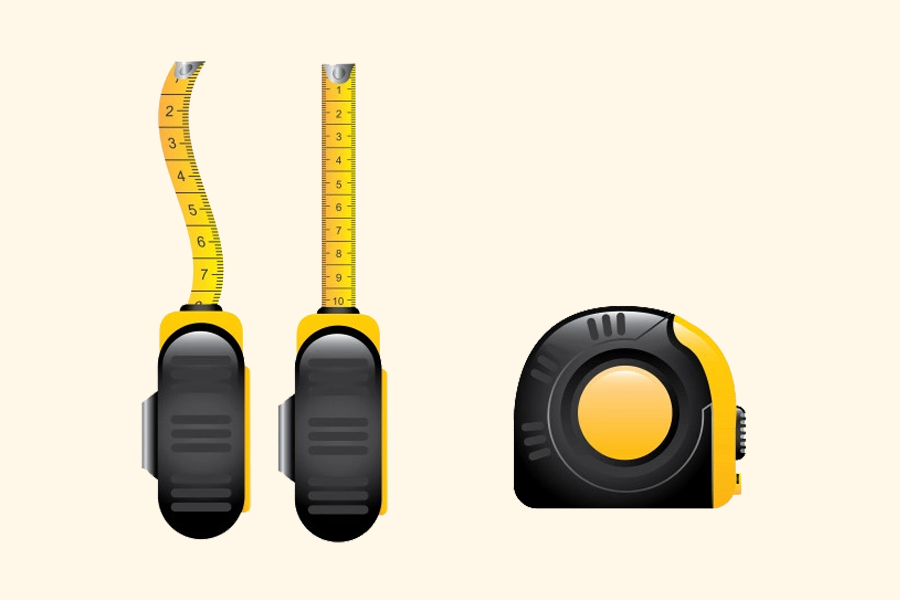 ควรเลือกใช้เทปวัด หรือตลับเมตร แบบที่ใช้ในงานก่อสร้าง หรือแบบที่มีแถบวัดระยะทำด้วยเหล็ก เพราะจะมีแข็งแรงและสามารถยื่ดได้ยาวเพื่อวัดระยะต่างๆ ของบ้านหรือห้องคอนโดได้อย่างสะดวก