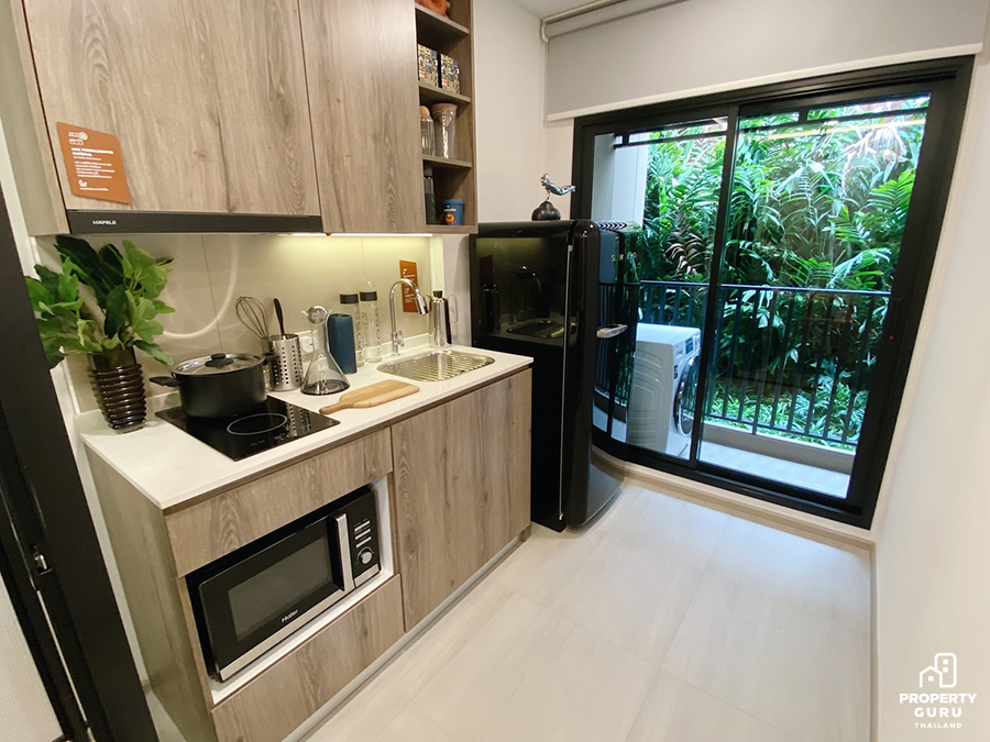 ห้องครัวแบบปิดเหมาะสำหรับคนชอบทำอาหาร และการออกแบบราวกันตกบริเวณระเบียงที่มีระยะห่างซี่ไม่เกิน 7.5 เซนติเมตร เพื่อป้องกันสัตว์ตัวเล็กมุดลอดได้