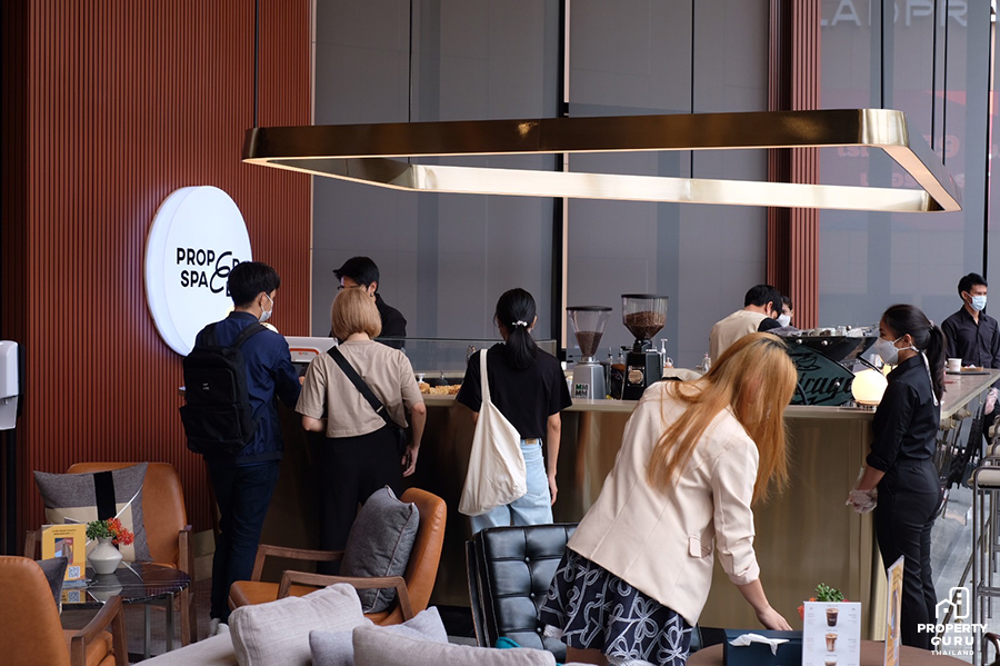 ด้านในก็จะเป็นสำนักงานขายปกติ สามารถแจ้งได้เลยว่ามาคาเฟ่ หรือจะแวะดูคอนโดด้วยก็ได้ค่ะ