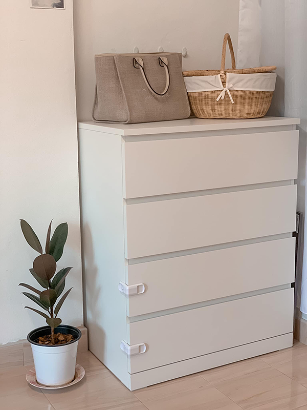 ซื้อชั้นสำหรับเก็บของทรงสูงสีขาวมาไว้สำหรับเก็บของเล่นลูก และเก็บของต่างๆ ราคา 1,200 บาท จาก IKEA