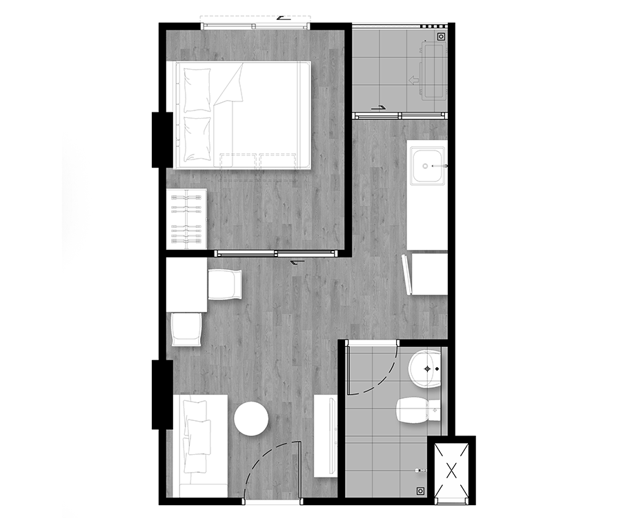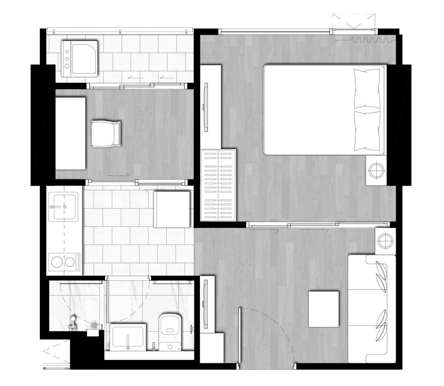 สามารถจัดวางพื้นที่ใช้สอยและปรับเปลี่ยนได้หลากหลายรูปแบบตามความต้องการของผู้อยู่อาศัย และยังสามารถกั้นแบ่งพื้นที่บางส่วนทำเป็นห้องอเนกประสงค์ได้ ไม่ว่าจะเป็นห้องแต่งตัว ห้องทำงาน หรือจะเป็นห้องนอนสำหรับรับแขก แต่ทั้งนี้ก็ขึ้นอยู่กับขนาดพื้นที่ใช้สอยของ