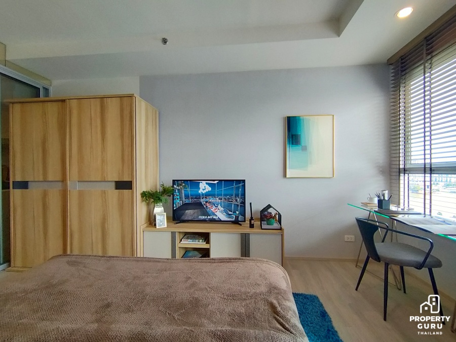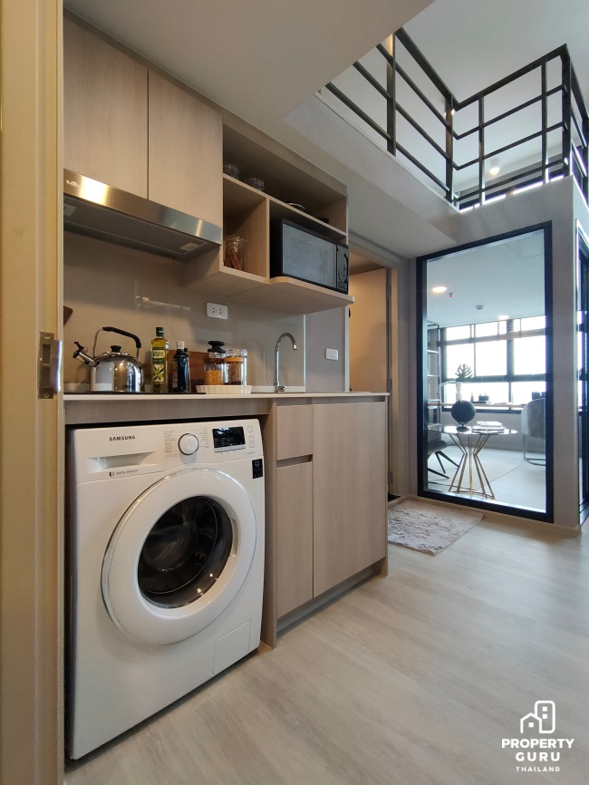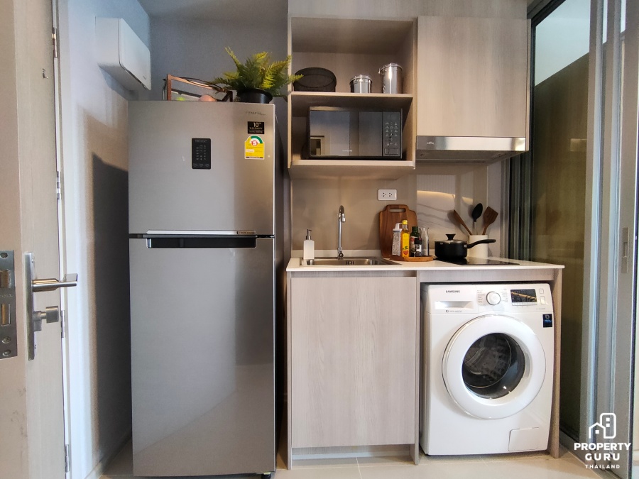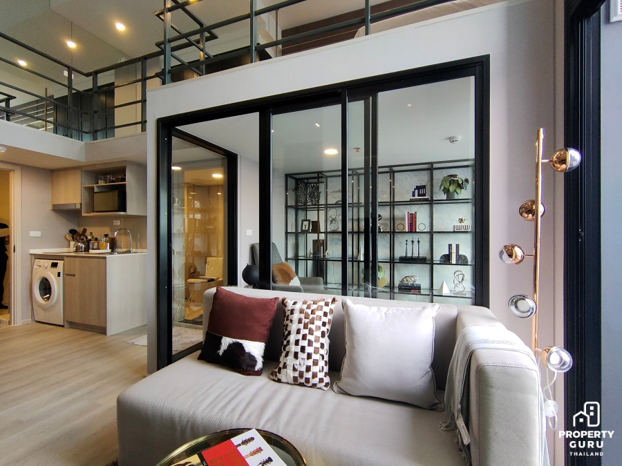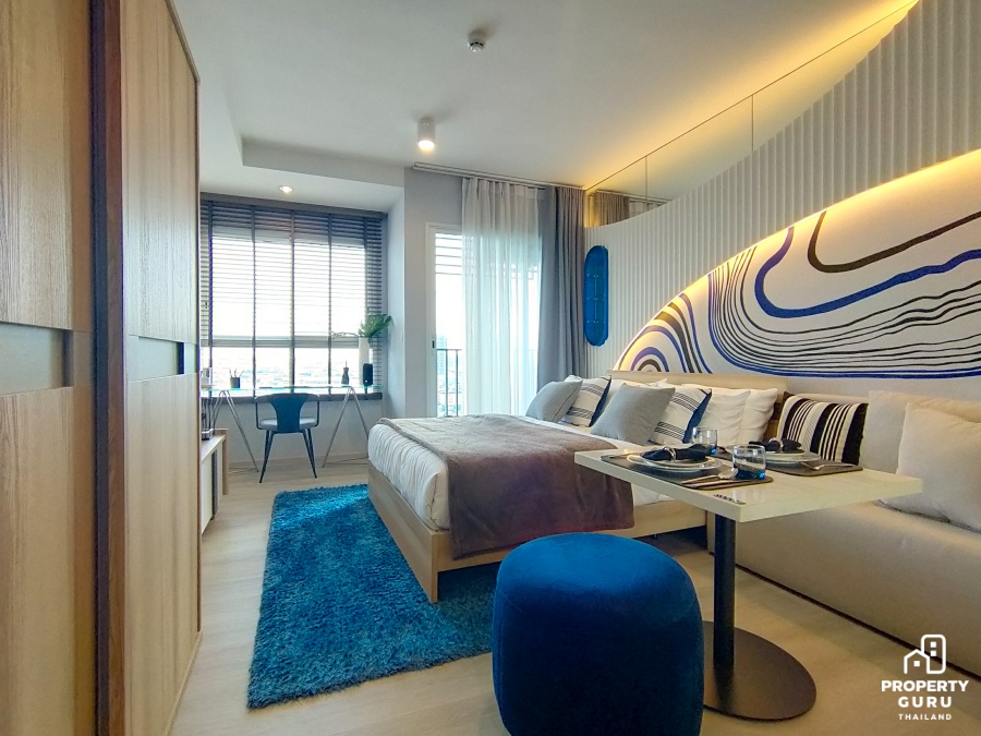 ห้อง Studio ขนาด 26 ตร.ม. : แยกพื้นที่ใช้สอยแบ่งเป็นสัดส่วนชัดเจน ฟังก์ชันครัวปิดป้องกันกลิ่นรบกวนเวลาทำอาหาร เดพาสูงโปร่ง 2.65 เมตร ได้ตู้เก็บของและตู้รองเท้า Built-in มาให้ ราคาเริ่มต้น 2.09 ล้านบาท*