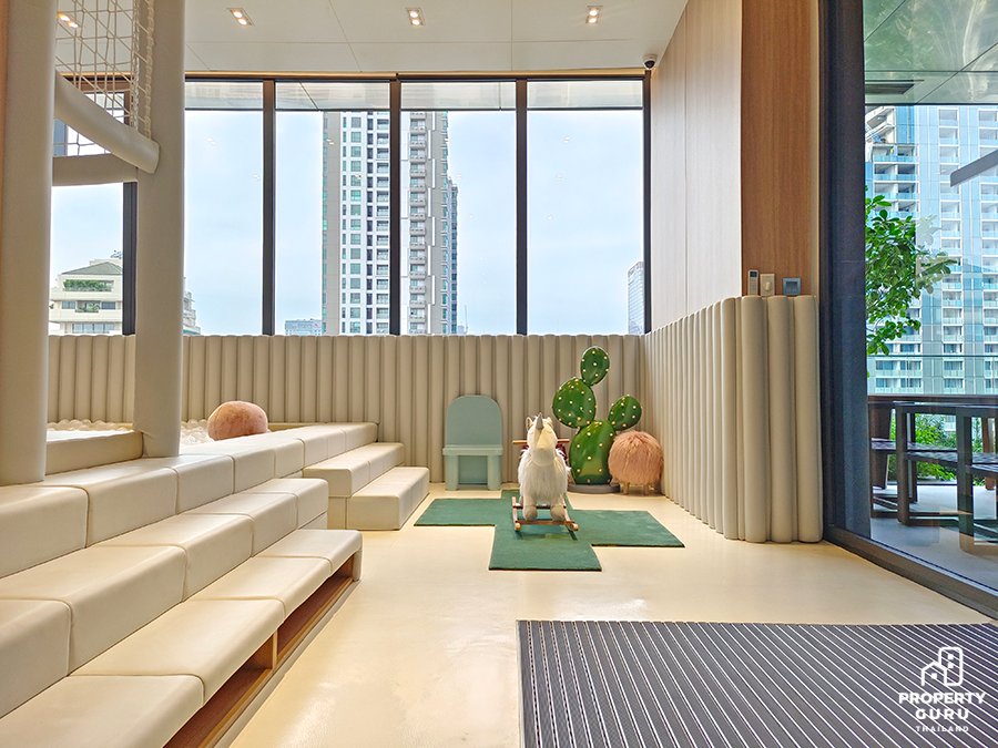 7. Mind (สุขภาวะทางจิตใจ) : ออกแบบพื้นที่ส่วนกลางให้เข้ากับธรรมชาติ พื้นที่ความสูงห้องและช่องแสงเต็มกว่า 3 เมตร