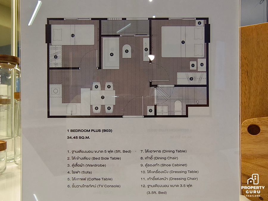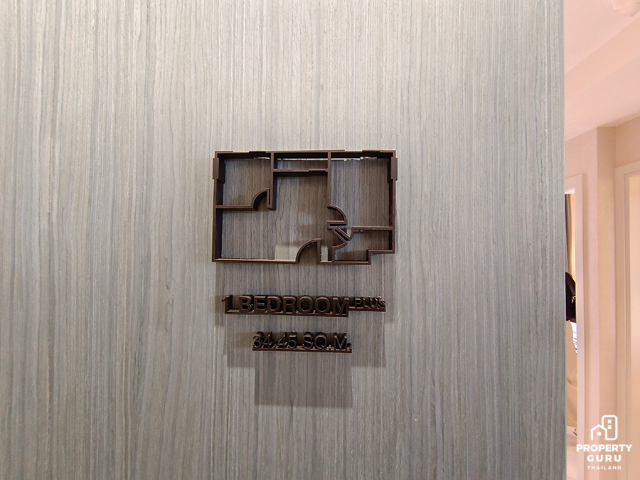 1 Bedroom Plus 34.40-34.90 ตร.ม. เป็นห้องหน้ากว้างเกือบ 8 เมตร ห้องนอนจะอยู่ด้านขวา ส่วนทางซ้ายจะเป็นห้องพลัส เหมือนซื้อ 1 ห้องนอนแต่ได้ 2 ห้องนอน Built-in เคาน์เตอร์ครัวรูปตัว U ห้องนั่งเล่นได้เก้าอี้ 3 ตัวแบบห้องตัวอย่างช่วยประหยัดพื้นที่