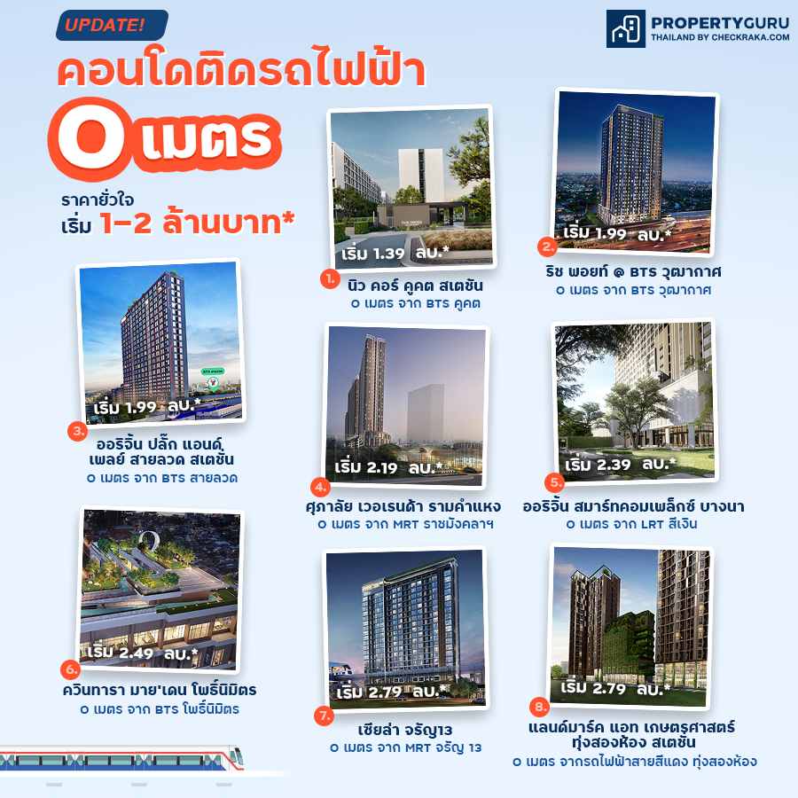 UPDATE คอนโดติดรถไฟฟ้า 0 เมตร ราคายั่วใจเริ่ม 1-2 ล้านบาท