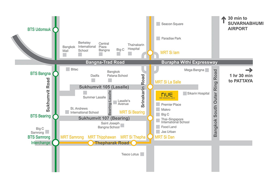 ที่สุดของความสะดวกสบาย ทำเลติดถนนใหญ่ ต้นบางนาตราด เชื่อมต่อเส้นหลักทั้งบางนา ศรีนครินทร์ สุขุมวิท กาญจนาภิเษก ใกล้ทางขึ้นทางด่วนบูรพาวิถี เชื่อมต่อการเดินทางด้วย BTS สายสีเขียวเข้ม สถานีบางนา และ MRT สายสีเหลือง สถานีศรีเอี่ยม นอกจากนี้ยังมีบริการรถรับส่ง Shuttle Service ให้แก่ผู้พักอาศัยอีกด้วย