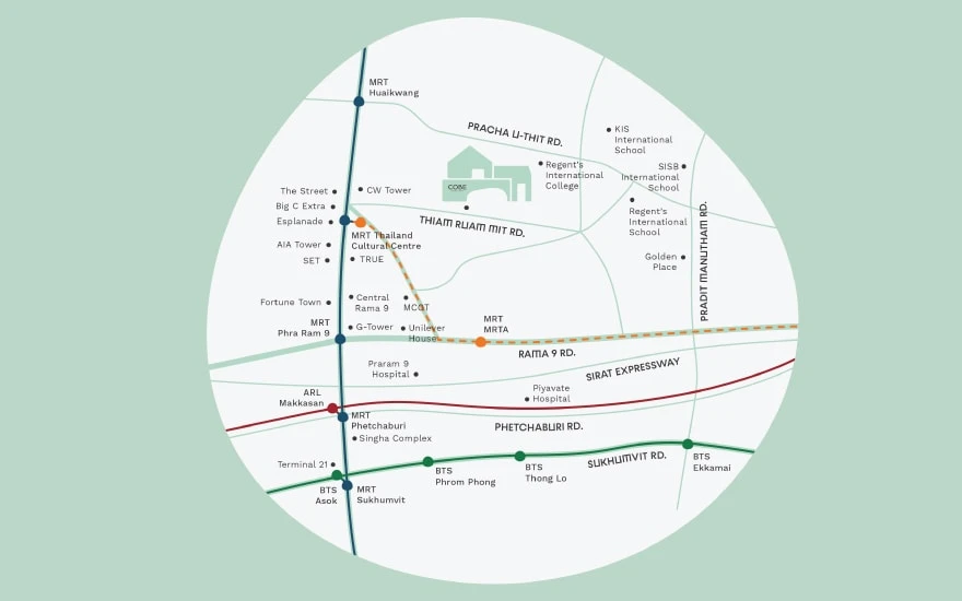 โครงการอยู่ใกล้กับ MRT สถานีศูนย์วัฒนธรรมฯ และยังเป็นสถานีเชื่อต่อกับสายสีส้ม ประมาณ 1 กม. มีแบบห้องให้เลือกหลากหลายทั้งสตูดิโอ 1 ห้องนอน 1 ห้องนอนพลัส และ 2 ห้องนอน ราคาเริ่มต้น 2.49 ล้าน*