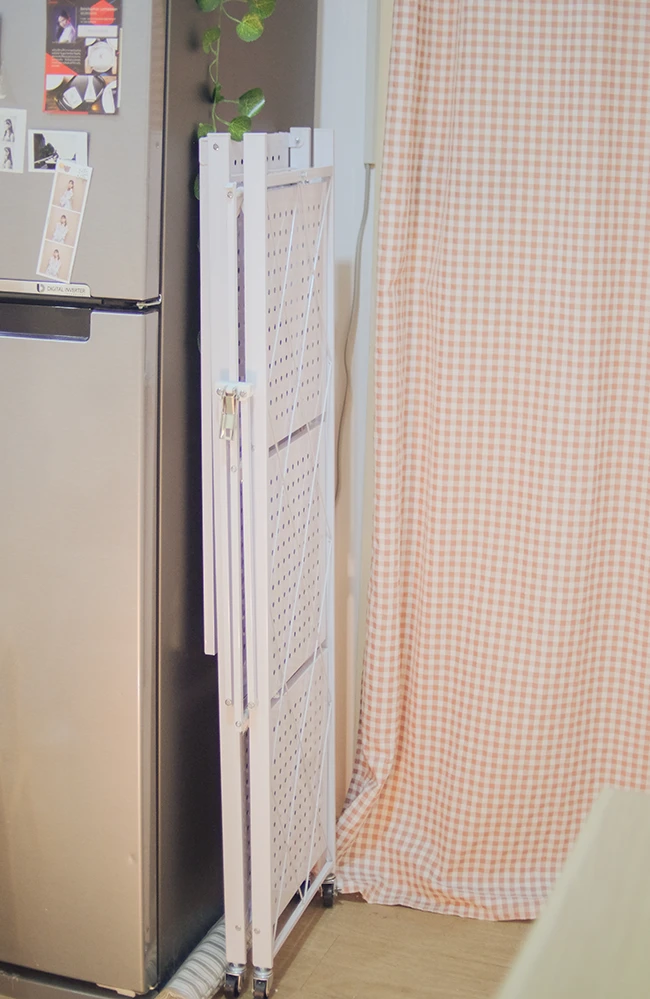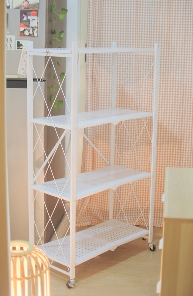 ชั้นวางของที่เหมาะกับคนมีพื้นที่จำกัด เช่น คอนโด หอพัก เพราะสามารถพับได้ง่าย จะหยิบใช้เมื่อไรค่อยกางออกมาเป็นชั้น แถมยังมีให้เลือกหลายชั้นหลายขนาด