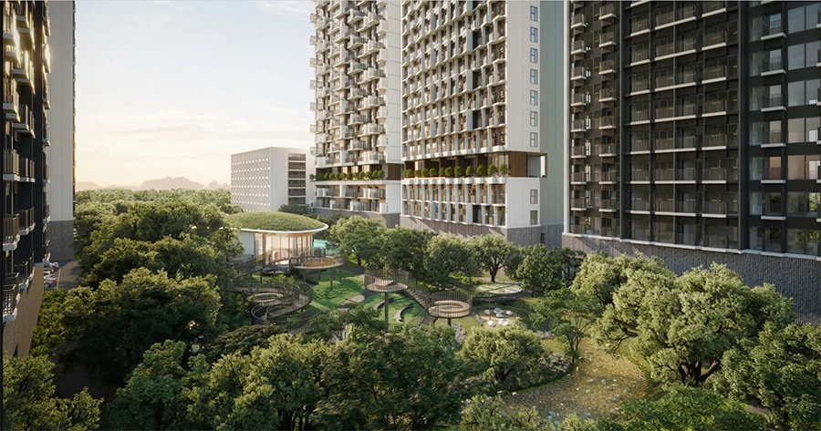 จึงเป็นโครงการที่มีการดีไซน์ เนรมิต พื้นที่ใจกลางให้ออกมา ให้กลายเป็น Forest Habitat และมาพร้อมกับฟังก์ชันที่ลูกบ้านสามารถออกมาใช้งานได้อย่างจริงจังในทุกมุม ซึ่งแปลว่าพื้นที่ 5 ไร่ จะต้องมีระบบนิเวศในตัวได้ในระดับหนึ่ง จึงเป็นเกณฑ์ที่คณะกรรมการเทใจให้อย่างเต็มร้อย