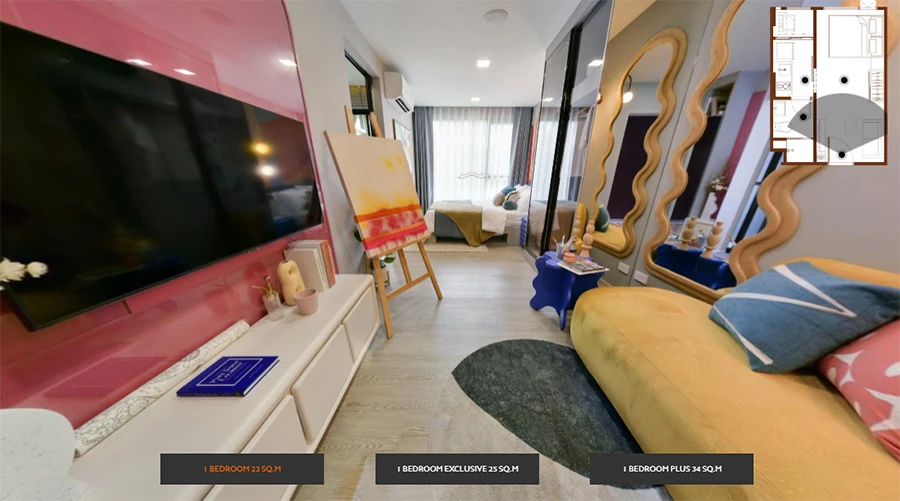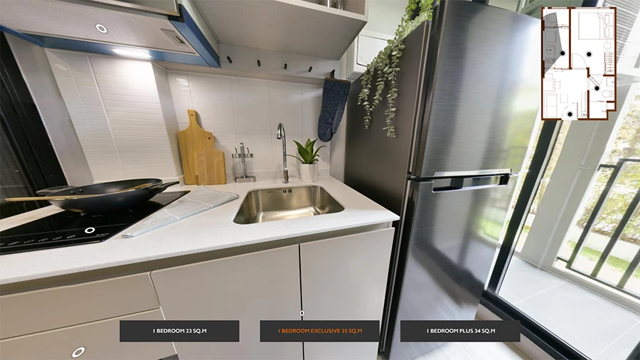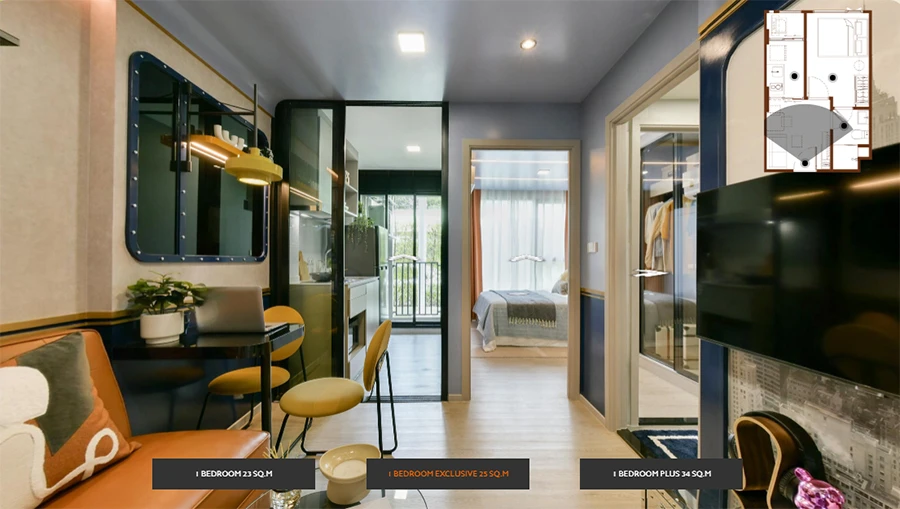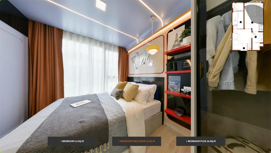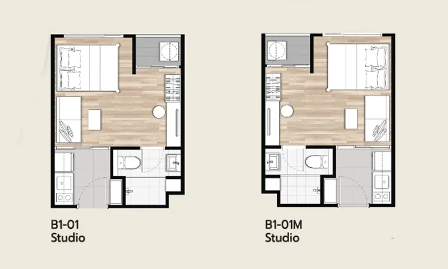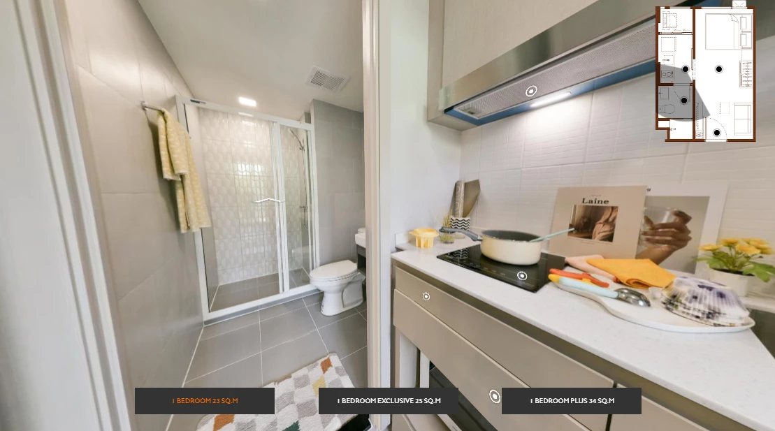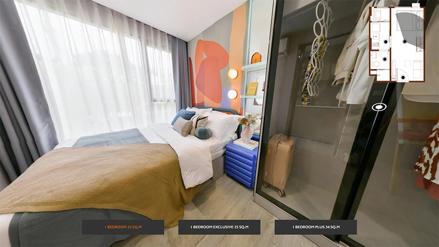 ตัวอย่างห้อง 1 ห้องนอน ขนาด 22.80-23.50 ตร.ม.
