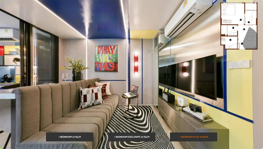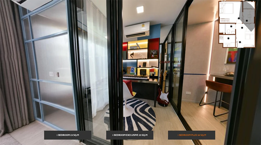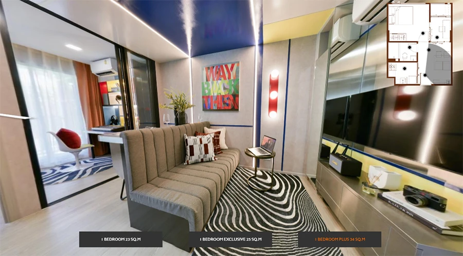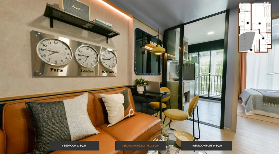 ตัวอย่างห้อง 1 ห้องนอน Plus ขนาด 34.50-35.40 ตร.ม.