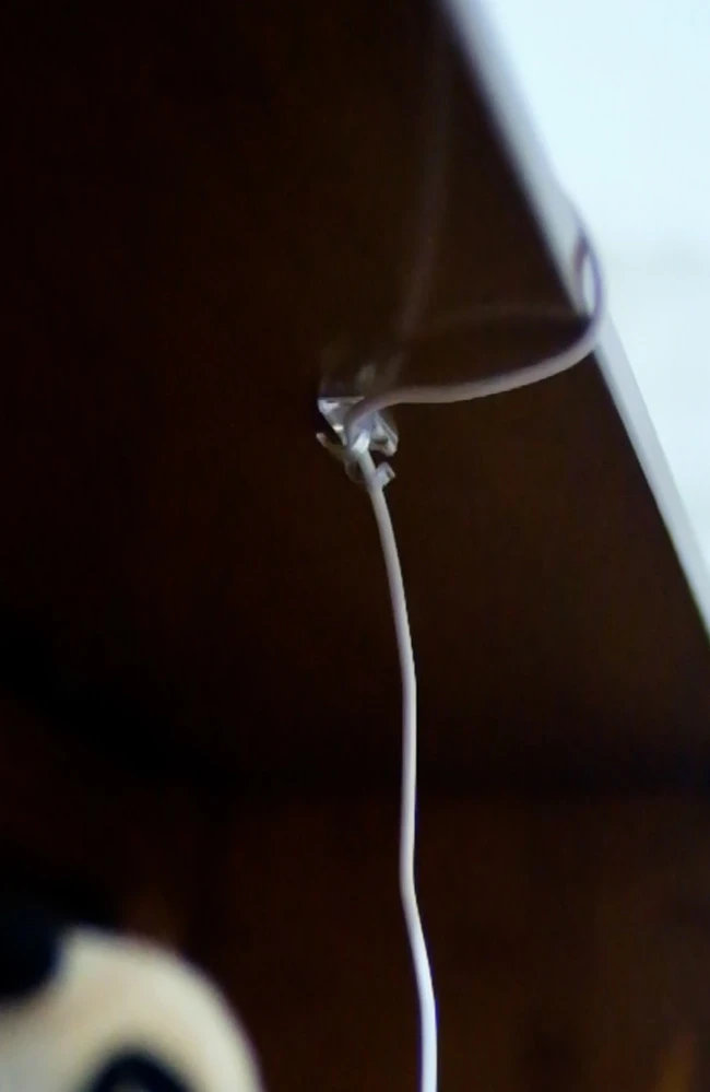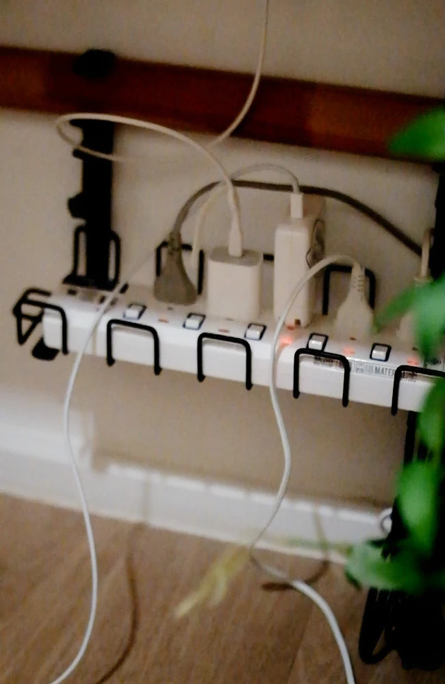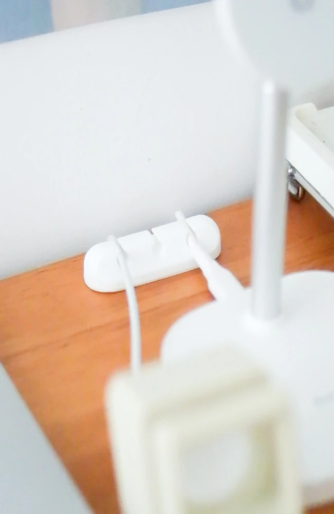 สายชาร์จบนโต๊ะทำงานที่รกและพันกันวุ่นไปหมด แค่นำตัวนี้มาติดและนำสายไฟเข้าตามช่อง จะช่วยให้สายไม่พันกันและดูเป็นระเบียบสุดๆ