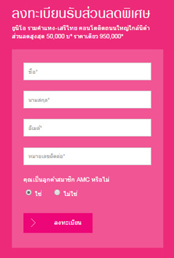 คลิกลงทะเบียนเพื่อรับส่วนลดสูงสุด 50,000* บาท และพบกับรีวิวเยี่ยมชมโครงการฉบับเต็มเร็วๆ นี้ ท่านใดที่สนใจสามารถลงทะเบียนเพื่อรับสิทธิเศษได้ที่นี่