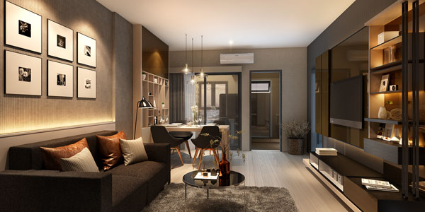 ภาพจำลองบรรยากาศห้องพักอาศัยแบบ 1 ห้องนอน