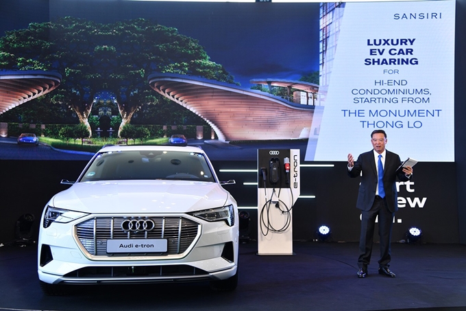 "AUDI x SANSIRI Strategic Partnership : Dare to Change" พันธกิจแนวคิดขับเคลื่อน เปลี่ยน 3 ด้านเพื่อโลกสีเขียว ลดก๊าซคาร์บอนด์ไดออกไซด์ร่วมกันเพื่อเศรษฐกิจหมุนเวียน (Circular Economy) แสนสิริ องค์กรแรกในเอเชียในอุตสาหกรรมอสังหาริมทรัพย์ที่นำ Audi e-tron ยนตกรรมเอสยูวีพรีเมียมพลังงานไฟฟ้า 100% มาใช้ภายในองค์กร พร้อมนำร่อง ปูพรมโรดแมปขยาย Car Sharing ยกระดับบริการรถยนต์ลักชัวรีไฟฟ้าสำหรับส่วนกลางในโครงการ ไฮเอ็นด์ใหม่ในปีนี้ ตอบโจทย์ไลฟ์สไตล์ลูกบ้านในเมือง เพียงจองการใช้งานผ่าน