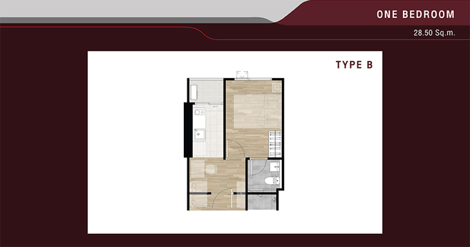 - 1 Bedroom Type B พื้นที่ใช้สอยขนาด 28.50 ตร.ม.