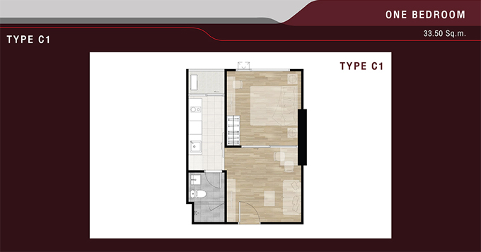 - 1 Bedroom Type C1 พื้นที่ใช้สอยขนาด 33.50 ตร.ม.