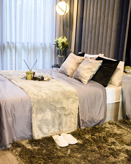 ด้านการดีไซน์มากด้วยฟังก์ชันและขนาดห้องที่หลากหลาย มีแบบ 1 ห้องนอน ขนาดเริ่มต้นที่ 22.50 - 28.30 ตร.ม. และ 1 ห้องนอนพลัส ขนาด 31.30 - 34.80 ตร.ม. พิเศษ! สำหรับ Exclusive Room ห้องมุม Type One-bed Plus Room มี 2 ห้องนอน มองเห็นวิวทั้ง 2 ด้าน พร้อมรับ Smart Mirror สร้างประสบการณ์ใหม่แห่งการอยู่อาศัยยุคดิจิทัล สวยระดับไฮเอนด์ในราคาที่จับต้องได้ ภายในห้องพักยังให้ความสำคัญกับเรื่อง Home Automation เพิ่มความสะดวกสบายได้เพียงปลายนิ้วสัมผัส อาทิ Digital Door Lock, Motion Sensor Night Light, Lighting Control, Air Control
