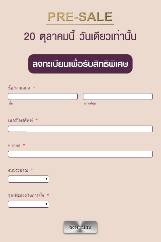 จะเห็นว่า ถ้าเทียบทำเลที่ตั้งโครงการ การออกแบบ และ Spec วัสดุ ที่เลือกใช้ในโครงการแล้ว คุ้มค่าแบบจัดเต็มมาก โดยราคาขายเฉลี่ยทั้งโครงการ เพียง 95,000 บาท ต่อตารางเมตร เท่านั้น โดยโครงการจะเปิดขาย Presales ในวันอาทิตย์ ที่ 20 ตุลาคม นี้ โดยในวัน Presales จะมียูนิตพิเศษ ในราคาพิเศษให้เลือกด้วย ท่านที่สนใจสามารถลงทะเบียนเพื่อรับสิทธิพิเศษได้ที่ด้านล่างนี้
