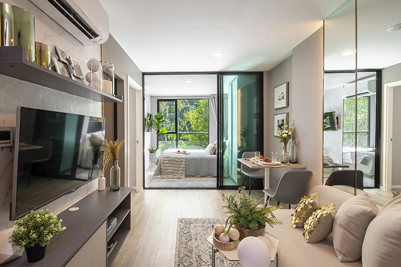 - ขนาด 1 ห้องนอน พื้นที่ตั้งแต่ 25 - 26 ตารางเมตร จำนวน 299 ยูนิต