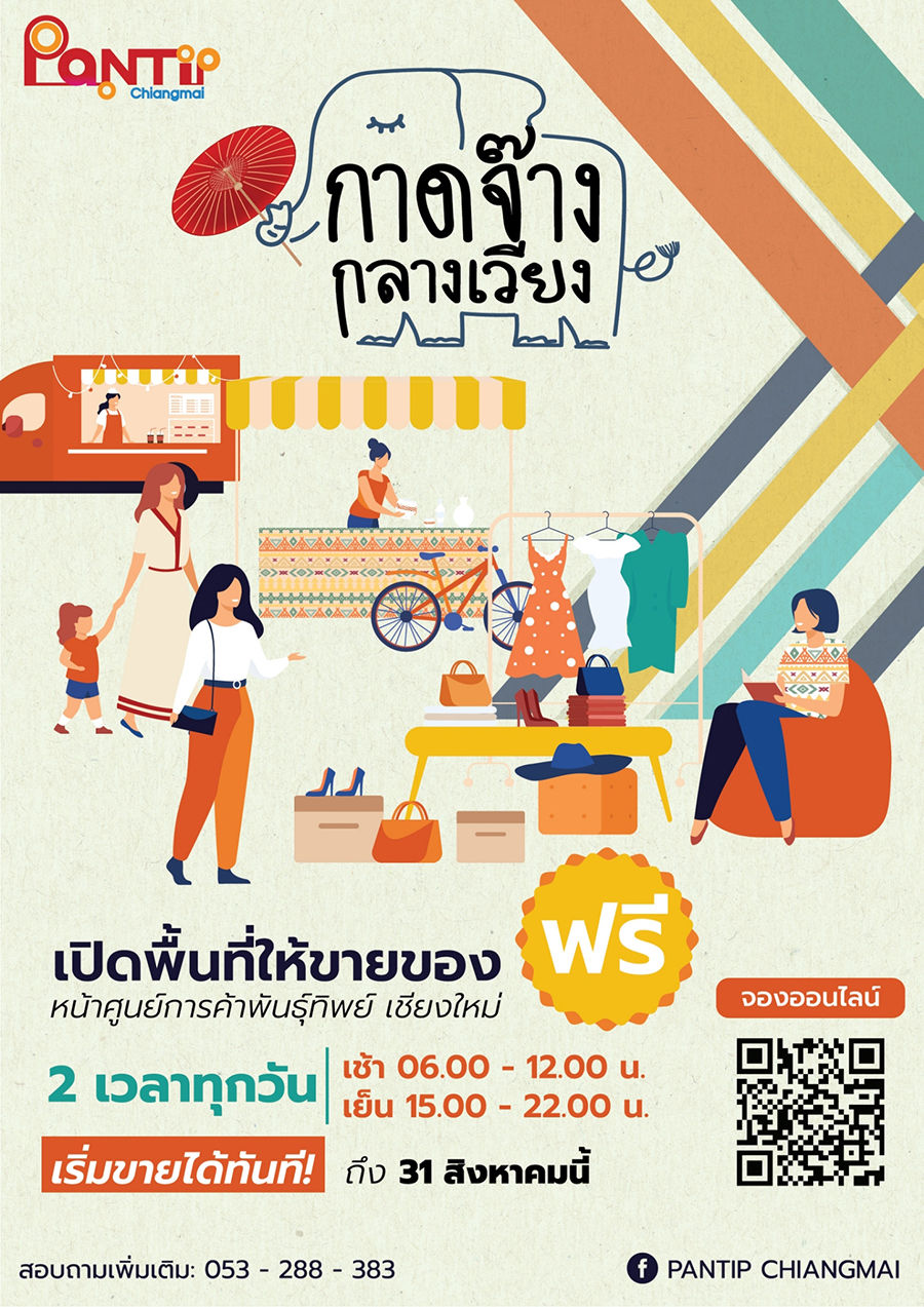 พันธุ์ทิพย์ เชียงใหม่ กระตุ้นการท่องเที่ยวหลังปลดล็อก เปิดพื้นที่รอบศูนย์การค้าฯ ให้ขายของฟรี! ถึง 31 ส.ค. นี้