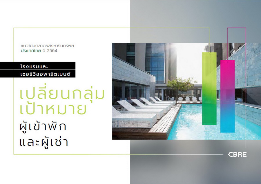 ตลาดโรงแรมและเซอร์วิสอพาร์ตเมนต์ในกรุงเทพฯ คือหนึ่งในตลาดอสังหาริมทรัพย์ที่ได้รับผลกระทบมากที่สุด เพราะนักท่องเที่ยวที่เดินทางเข้ามาในประเทศไทยลดลงจาก 40 ล้านคนในปี 2562 ไปเป็นต่ำกว่า 7 ล้านคนในปี 2563 ซีบีอาร์อีคาดการณ์ว่าอุตสาหกรรมการท่องเที่ยวของไทยจะกลับคืนสู่ระดับเดียวกับปี 2562 ได้ในปี 2565 โดยต้องขึ้นอยู่กับความสำเร็จของวัคซีนและการฟื้นตัวทางเศรษฐกิจของประเทศที่เป็นนักท่องเที่ยวหลักของไทยอย่างจีน รัสเซีย ญี่ปุ่น และอินเดีย