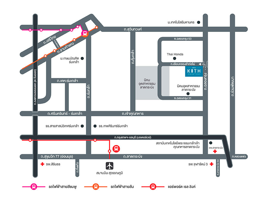 โครงการอยู่ติดถนนใหญ่ ใกล้บริเวณทางเข้านิคม ลาดกระบัง และใกล้ ม.พระจอมเกล้าฯลาดกระบัง เดินทางสะดวกสบายมากกว่าที่คิด สามารถเข้าสู่ใจการเมือง หรือ ออกสู่ต่างจังหวัดได้ง่าย