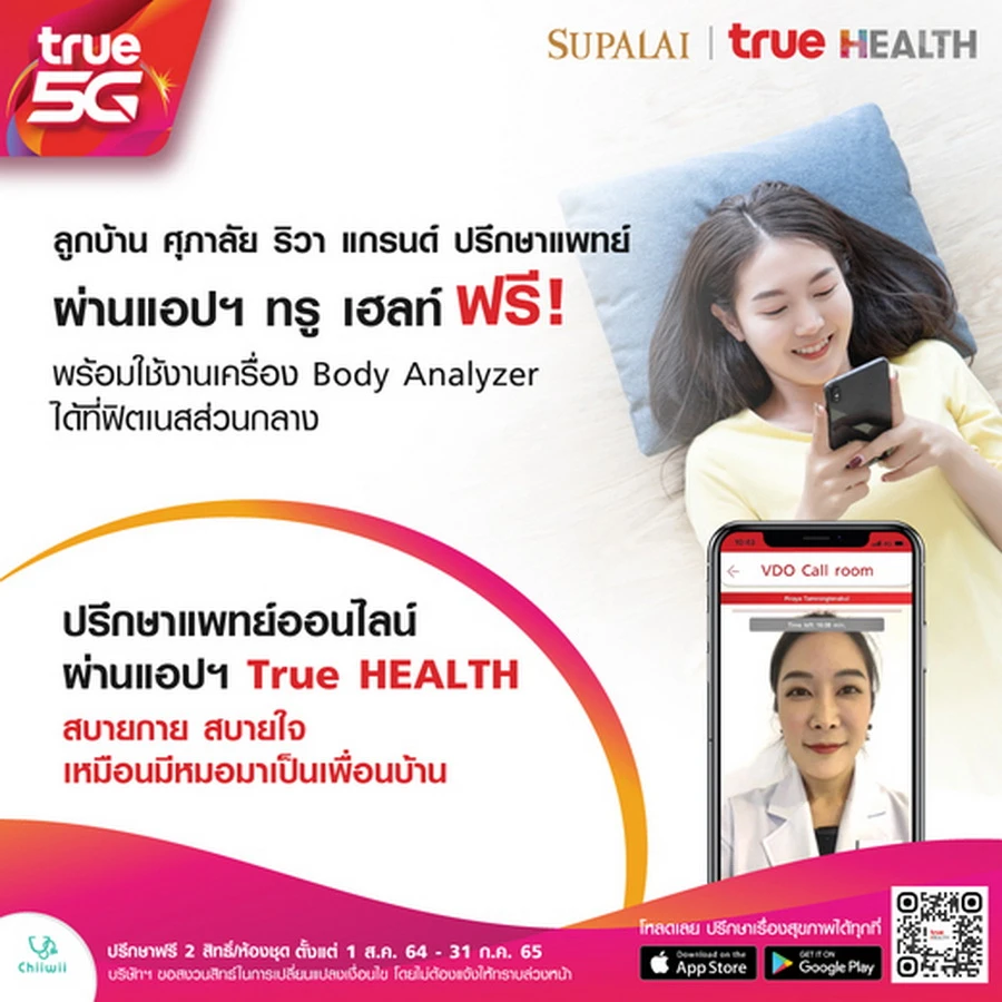ซึ่งทางศุภาลัยนอกจากให้ความใส่ใจเรื่องที่อยู่อาศัยแล้ว ยังเล็งเห็นความสำคัญเรื่องสุขภาพกาย และสุขภาพใจของลูกบ้านเป็นอย่างมาก ในสถานการณ์ปัจจุบันที่ระบบสาธารณสุขของบ้านเราอาจไม่เอื้ออำนวยความสะดวกให้ใช้บริการที่โรงพยาบาลได้ จึงจัดแคมเปญ "ปรึกษาแพทย์ออนไลน์ผ่านแอปฯ True Health สบายกาย สบายใจ เหมือนมีหมอมาเป็นเพื่อนบ้าน" เป็นอีกหนึ่งทางเลือกที่ช่วยตอบโจทย์ในสถานการณ์อันยากลำบากช่วงโควิด -19 ซึ่งเน้นสะดวกสบายใช้งานได้ง่ายๆ ผ่านสมาร์ทโฟนทั่วไป สำหรับคนที่อยากจะพูดคุยตรวจสุขภาพกับคุณหมอโดยไม่ต้องเดินทาง เพื่อลดความเสี่ยงของการติดเชื้อในช่วงนี้ ทางบริษัทฯ ประเดิมโครงการแรกที่ ศุภาลัย ริวา แกรนด์ คอนโดมิเนียมสร้างเสร็จพร้อมโอนฯ ริมแม่น้ำเจ้าพระยา ซึ่งบริษัทฯ มุ่งหวังให้การบริการที่เป็นเลิศในทุก Customer Touchpoints และสามารถต่อยอดไปสู่โครงการต่างๆ ของศุภาลัยต่อไป