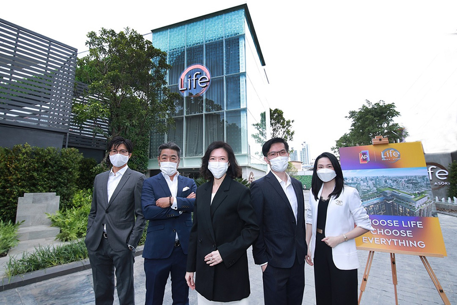 บริษัท เอพี (ไทยแลนด์) จำกัด (มหาชน) นำโดย (กลาง) นางสาวกมลทิพย์ บำรุงชาติอุดม รองกรรมการผู้อำนวยการ สายงานธุรกิจคอนโดมิเนียม (ขวาสุด) นางสาวนิยมาพร โต๊ะสงวนพันธุ์ ผู้อำนวยการอาวุโส (ที่ 2 จากขวา) นายพัชร ชยาสิริ ผู้อำนวยการอาวุโส เอพี ดีไซน์ แล็บ บมจ. เอพี (ไทยแลนด์) (ที่ 2 จากซ้าย) มร. โทโมฮิโกะ เอกุจิ ผู้อำนวยการ บริษัท พรีเมี่ยม เรสซิเดนซ์ จำกัด และ (ซ้ายสุด) มร. เรียว มัตสึโมโตะ, Business Advisor, บริษัท พรีเมี่ยม เรสซิเดนซ์ จำกัด ร่วมเปิดตัวคอนโดมิเนียมใหม่ล่าสุด ‘LIFE พระราม 4-อโศก’ โครงการร่วมทุนอันดับที่ 19 ระหว่างเอพี ไทยแลนด์ และพันธมิตรญี่ปุ่น มิตซูบิชิ เอสเตท เรสซิเดนซ์ (บริษัทในเครือมิตซูบิชิ เอสเตท กรุ๊ป) ถ่ายภาพ ณ Sales Galley โครงการ LIFE พระราม 4-อโศก