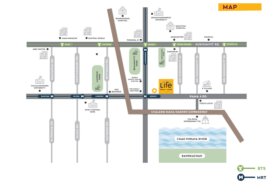 สำหรับโครงการ LIFE พระราม 4 - อโศก เป็นคอนโดสูง 39 ชั้น 1 อาคาร จำนวน 1,237 ยูนิต มูลค่าโครงการ 6,700 ล้านบาท ส่วนพักอาศัยเริ่มตั้งแต่ชั้น 9 – 36 ห้องชุดแบบ SIMPLEX ขนาด 26.5-75 ตารางเมตร ราคา 3.99 - 11.6 ล้านบาท (ราคาเฉลี่ย 148,300 บาท / ตร.ม.) ห้องชุดแบบ VERTIPLEX ขนาด 28.5 - 70 ตารางเมตร ราคา 5.5 - 12.5 ล้านบาท (ราคาเฉลี่ย 186,700 บาท / ตร.ม.)