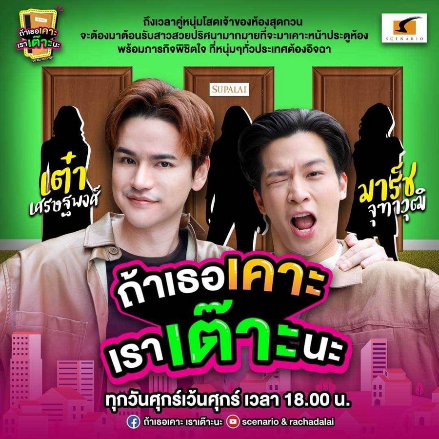 สามารถติดตามรายการ "ถ้าเธอเคาะ! เราเต๊าะนะ!" ประเดิมตอนแรก หรือ Ep.1 วันที่ 29 ตุลาคม 2564 ทางช่อง YouTube : Scenario & Rachadalai หรือติดตามผ่านช่องทางอื่น ๆได้ที่ เพจถ้าเธอเคาะ เราเต๊าะนะ และช่องทาง IG & Tiktok : @Thatherkoh