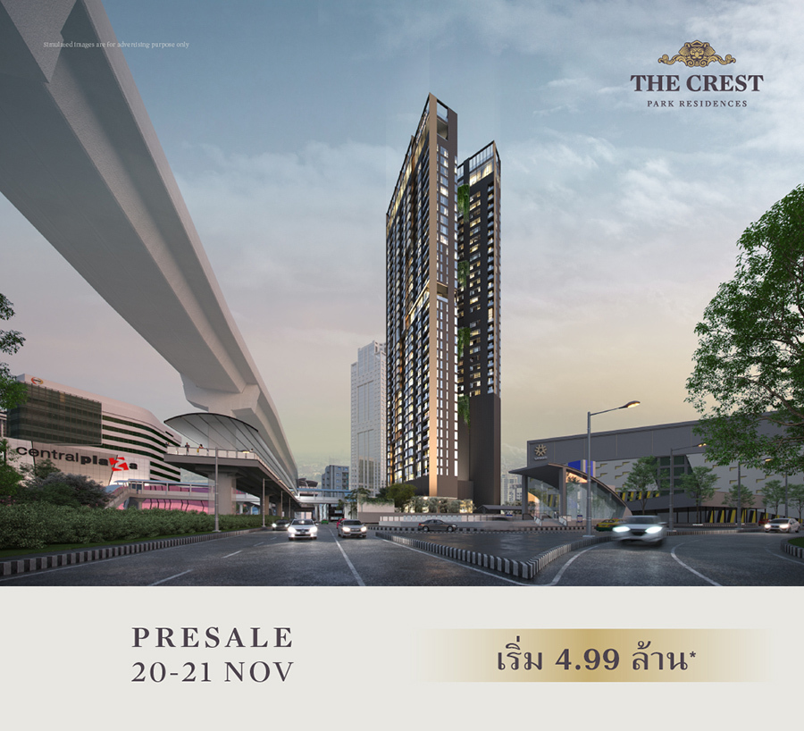 The Crest Park Residences by SC Asset x Nishitetsu Group PRESALE  เลือกห้องวิวสวย 20-21 พฤศจิกายนนี้ เริ่ม 4.99 ล้านบาท* สิทธิพิเศษสูงสุด 900,000 บาท พิเศษ 20 ยูนิตแรก จองพร้อมทำสัญญาในงาน รับ iPhone 13 Pro 128 GB*