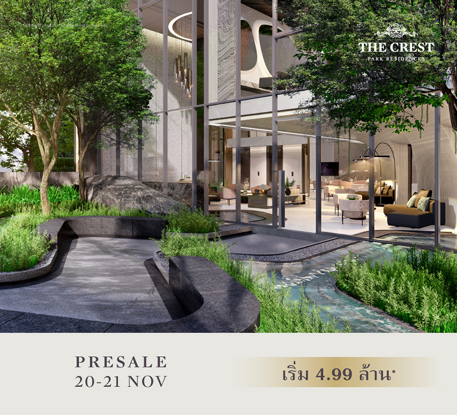 The Crest Park Residences by SC Asset x Nishitetsu Group PRESALE เลือกห้องวิวสวย 20-21 พฤศจิกายนนี้ เริ่ม 4.99 ล้านบาท* สิทธิพิเศษสูงสุด 900,000 บาท พิเศษ 20 ยูนิตแรก จองพร้อมทำสัญญาในงาน รับ iPhone 13 Pro 128 GB*