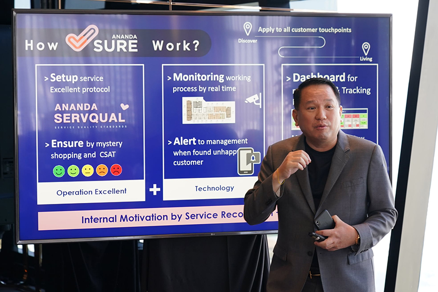 คุณประเสริฐ แต่ดุลยสาธิต ประธานเจ้าหน้าที่บริหาร สายงานธุรกิจอสังหาริมทรัพย์ บริษัท อนันดา ดีเวลลอปเม้นท์ จำกัด (มหาชน) กล่าวว่า อนันดาฯ มีความมุ่งมั่นสร้างสรรค์ไอเดียและพัฒนาสิ่งใหม่ๆ เน้นการพัฒนาคุณภาพชีวิตของคนเมืองและการอยู่อาศัยภายในโครงการ เพื่อตอบโจทย์ทุกความต้องการและทันต่อสถานการณ์ที่ยากในการคาดเดาเพื่อคุณภาพการอยู่อาศัยที่ดีที่สุดของคนเมือง โดยที่ผ่านมาอนันดาฯ ได้เดินหน้าพัฒนาศักยภาพของ “Ananda Sure” ซึ่งถือเป็น Backbone สำคัญในการจัดการโครงการในเครืออนันดาฯ ที่มีโครงการที่อยู่ในความรับผิดชอบกว่า 48 โครงการ มูลค่ากว่าหนึ่งแสนล้านบาท เพื่อส่งมอบสินค้าและบริการที่มีคุณภาพ (product & Service Quality) ทำให้อนันดาฯ เกิดการเติบโตอย่างยั่งยืนในอนาคตต่อไป “Ananda Sure” เป็นหัวใจสำคัญที่จะเข้ามายกระดับคุณภาพการบริหารจัดการและบริการ ครอบคลุมการดูแลลูกค้าตั้งแต่วันแรกที่เข้ามาตลอดจนทุกช่วงเวลาของการอยู่อาศัย เพื่อนำไปสู่ความเป็นเลิศด้านปฏิบัติการดูแลลูกค้า (Operation Excellence) ในทุกๆ ด้าน ภายใต้แกนหลักสำคัญ คือ