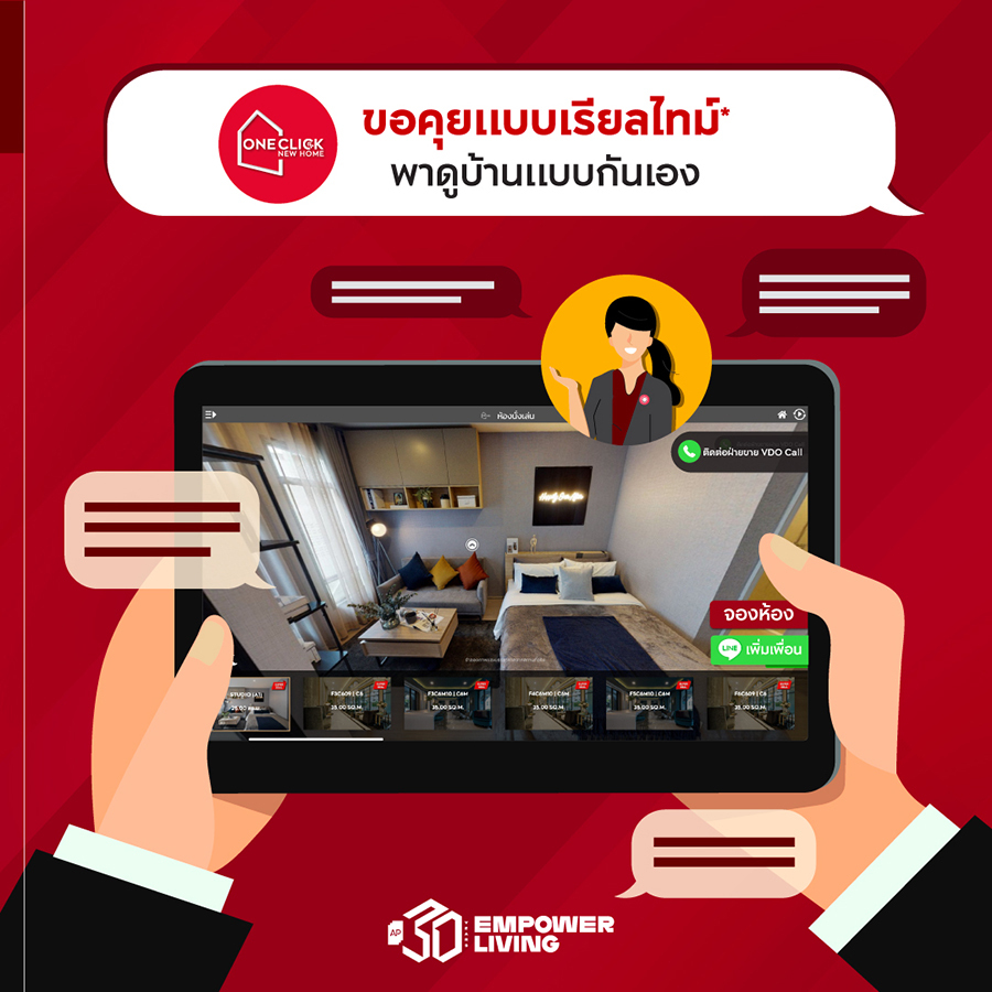 Everything Digital หนึ่งในโรดแมทที่เอพียึดเป็นหลักสำคัญในการขับเคลื่อนธุรกิจ ในด้านงานขายและงานบริการหลังการขายได้มีการนำเทคโนโลยีมาเป็นหนึ่งในกลไกขับเคลื่อน เพื่อส่งมอบประสบการณ์ที่สะดวกสบายเข้าถึงสินค้าและการอยู่อาศัยในเอพี คอมมูนิตี้ผ่านระบบดิจิตอลมากยิ่งขึ้น ซึ่งจากข้อมูลในปี 2564 พบว่าลูกค้าคอนโดเอพีกว่า 85% สอบถามข้อมูลหรือนัดหมายเยี่ยมชมโครงการผ่านดิจิตอลแพลตฟอร์มต่างๆ ของเอพีเพิ่มมากขึ้น โดยเฉพาะ ONE CLICK NEW HOME โซลูชั่นใหม่กับการซื้ออสังหาริมทรัพย์เครือเอพี ได้รับการพัฒนาขึ้นเพื่อส่งตรงประสบการณ์เสมือนเดินทางไปยังชมโครงการจริง ทั้งพื้นที่ส่วนกลาง ห้องจริง วิวจริง พร้อมบรรยากาศกลางวันและกลางคืน ด้วยความละเอียดสูงสุดแบบ 360°ถือเป็นอีกหนึ่งเครื่องมือในการนำเสนอสินค้าผ่านประสบการณ์โลกดิจิตอลเสมือนจริง และช่วยให้ลูกค้าตัดสินใจซื้อได้โดยไม่ต้องเดินทางออกจากบ้าน
