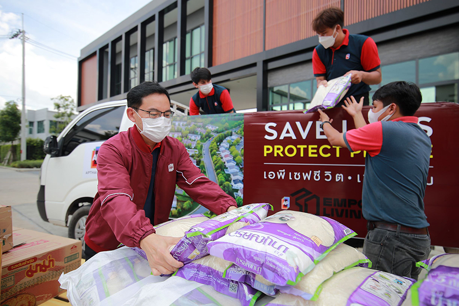 ในด้านสังคมท่ามกลางสถานการณ์การแพร่ระบาดที่เกิดขึ้นอย่างหนักในปีนี้ ได้ส่งผลกระทบต่อผู้คนในสังคมทุกภาคส่วน แม้ว่าหลายหน่วยงานจะร่วมมือร่วมใจช่วยเหลือซึ่งกันและกัน แต่ก็ยังพบว่ามีอีกหลายกลุ่มคนที่อาจยังถูกมองข้ามและเข้าถึงการช่วยเหลือได้น้อย จากแคมเปญ SAVE หมอ SAVE ประเทศไทยเมื่อปี 2563 สู่ปี 2564 กับแคมเปญ SAVE LIVES, PROTECT PEOPLE - เอพี เซฟชีวิต เซฟสังคม ที่เอพี ไทยแลนด์จัดขึ้น เพื่อเติมพลังและจุดประกายสังคมไทยก้าวผ่านโควิดไปด้วยกัน โดยมีเป้าหมายที่ยิ่งใหญ่ที่ว่าวิกฤตนี้เอพีจะไม่ทิ้งใครไว้ข้างหลัง กับหลากหลายภารกิจลงพื้นที่ เพื่อหยิบยื่นความช่วยเหลือให้กับกลุ่มคนที่อาจยังถูกมองข้าม อย่างเช่น การเข้าไปช่วยดูแลกลุ่มพระสงฆ์จำนวนเกือบ 1,000 รูป ใน 10 พื้นที่เสี่ยง พร้อมสนับสนุน SMEs ไทยด้วยการรับซื้ออาหารสด ผัก ผลไม้ ไข่ไก่ และเนื้อสัตว์ในรูปแบบผูกปิ่นโตจัดส่งแก่โรงครัวทางวัด