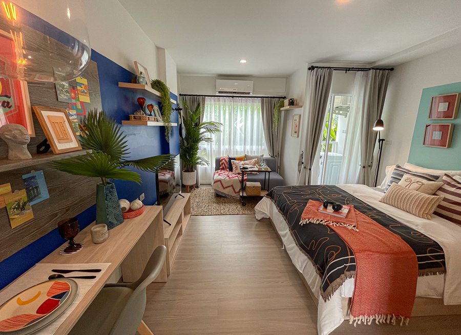 “HAY HUA HIN Sales Gallery” ออกแบบด้วยสีฟ้า-เหลือง สดใส สะดุดตา สะท้อนความสดชื่นในแบบฉบับ ‘HAY’ มาพร้อมกับโชว์ยูนิต 1 ห้องนอน ขนาด 24.5 ตร.ม. แต่งครบในสไตล์ Modern ที่เน้นให้ความรู้สึกผ่อนคลายแสดงถึงความเป็น Tropical Beach ด้วยโทนไม้ ผสมผสานเข้ากับสีสันที่สดใส พบกับ “HAY HUA HIN Sales Gallery” ได้แล้ววันนี้! ที่