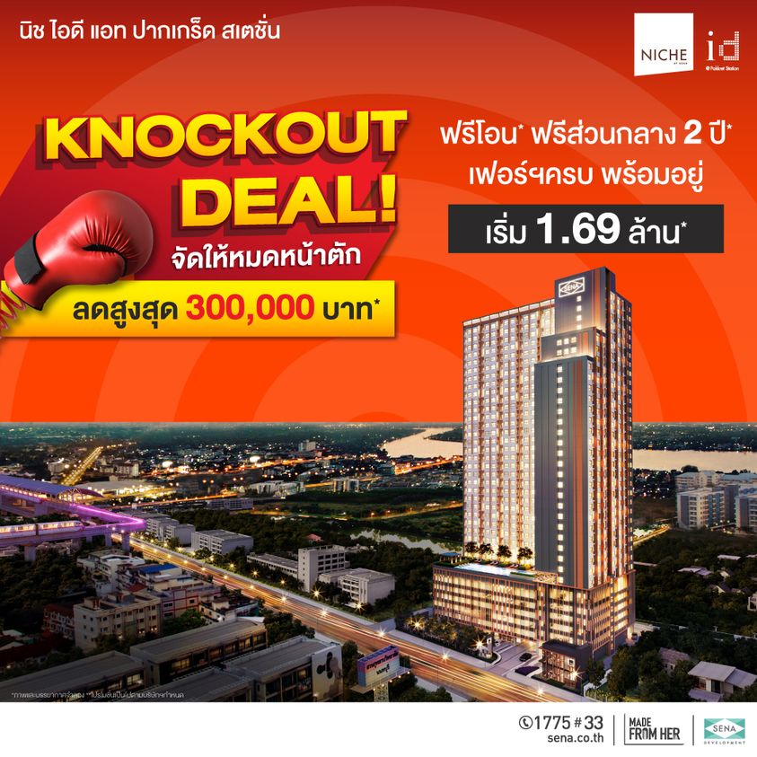 นิช ไอดี แอท ปากเกร็ด สเตชั่น คอนโดพร้อมอยู่ ชั้นสูง วิวสวย ขนาดห้อง 25 - 54 ตร.ม. ตอบโจทย์การอยู่อาศัย ติดถนนใหญ่ ใกล้รถไฟฟ้าสถานีปากเกร็ด เริ่ม 1.69 ล้าน* ลงทะเบียนเพื่อรับสิทธิพิเศษ คลิก