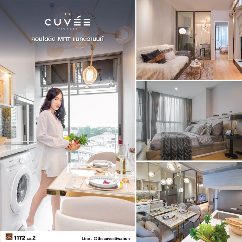 The CUVEE TIWANON ONE Price 2.89 ล้านบาท* พร้อมอยู่ กู้เต็ม 100% ฟรี!! โปรโมชั่น 9 รายการ คอนโดหรู 5 Star Facility ติดรถไฟฟ้า 50 เมตร 33 ชั้น ห้องใหญ่ ครัวปิดแบบแยกสัดส่วน เพียง 8 ยูนิตต่อชั้น พร้อมส่วนกลางจัดเต็ม ฟิตเนส สระว่ายน้ำยาวถึง 32 เมตร Sky Lounge ส่วนตัวสุดหรู บนชั้น Roof Top ทำเลดีติด รถไฟฟ้า MRT แยกติวานนท์ ลงทะเบียน :