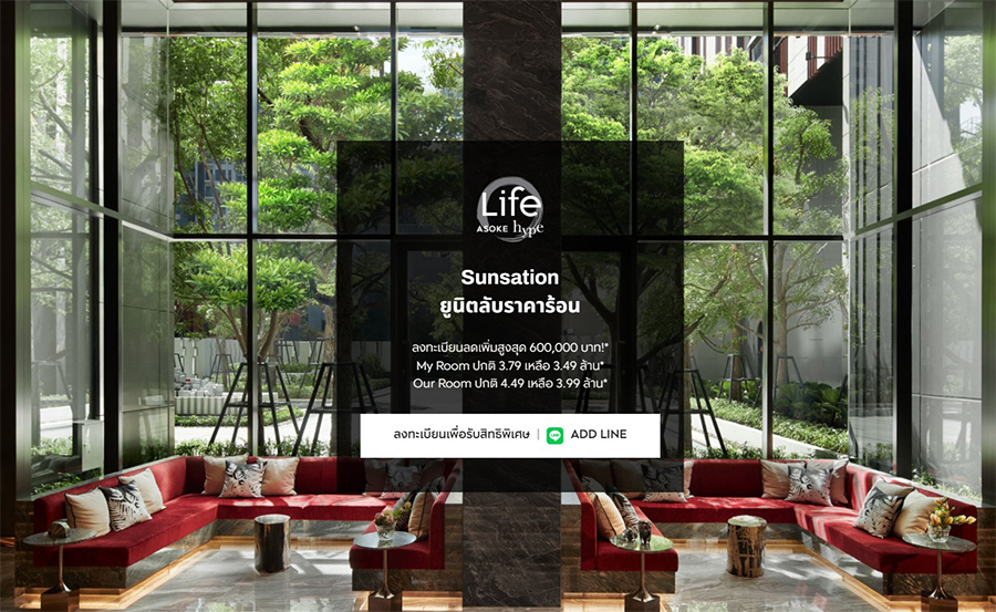 "LIFE อโศก ไฮป์" บูทีคคอนโดพร้อมอยู่ ส่วนกลางดีไซน์จัดจ้าน ตึกเฉดสีแดงพิเศษ Red Hype โดดเด่นใจกลางพระราม 9 เพียง 300 เมตร ถึง MRT พระราม 9* และ 550 เมตร Airport Rail Link มักกะสัน รถไฟฟ้าความเร็วสูงเชื่อม 3 สนามบิน*