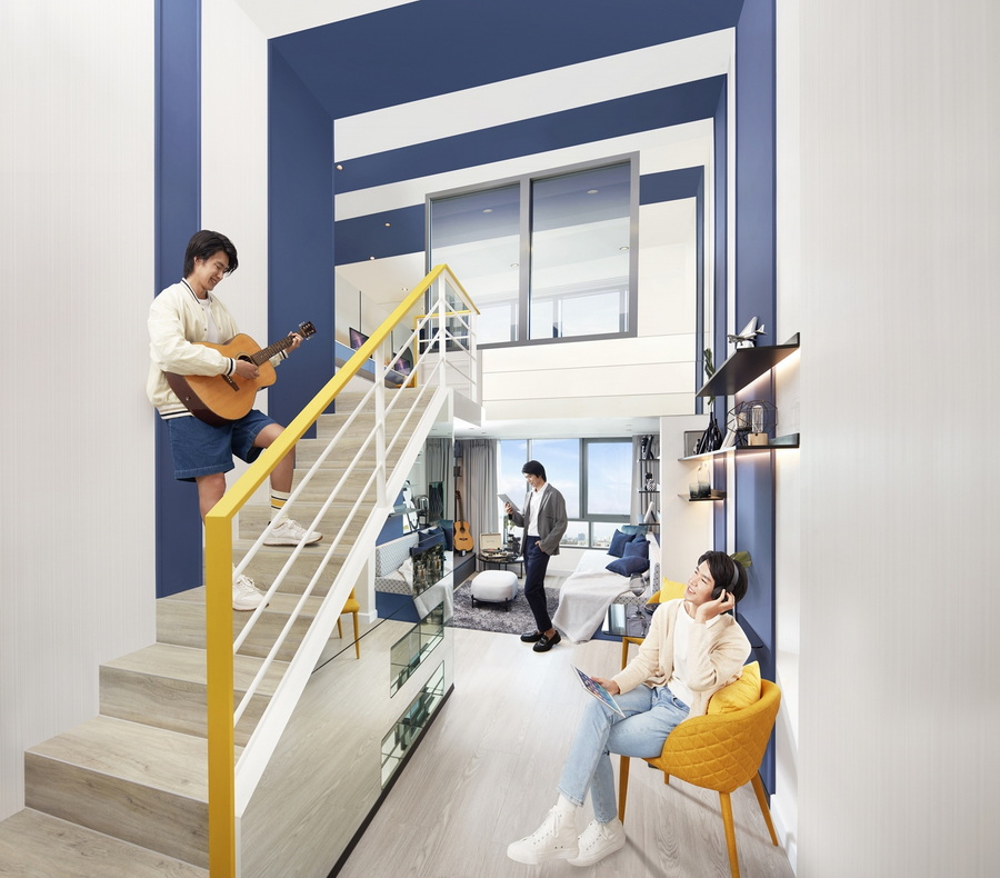 "MOFF Double Space" ยังคงจุดเด่นที่มีเพดานสูงกว่า 4.5 เมตร โปร่งโล่งแบบ Double Volume พร้อมหน้าต่างบานใหญ่ทั้งชั้นบนและชั้นล่าง ที่ให้อารมณ์การพักอาศัยเหมือนอยู่บ้าน แต่ได้รับการปรับโฉมจากห้อง MOFF แบบเดิม ด้วยการเพิ่มพื้นที่ในส่วนชั้นบนให้มากขึ้น โดยขยายพื้นที่เพิ่มเป็น 12-14 ตร.ม. ทำให้สามารถปรับเปลี่ยนการใช้สอยได้ตามไลฟ์สไตล์ผู้อยู่อาศัย ไม่ว่าจะเป็นห้องนอนเพิ่มอีก 1 ห้อง หรือจัดเป็นมุมรองรับการทำงานที่บ้าน หรือมุมพักผ่อนพร้อมจัดเก็บของสะสมส่วนตัว เป็นต้น